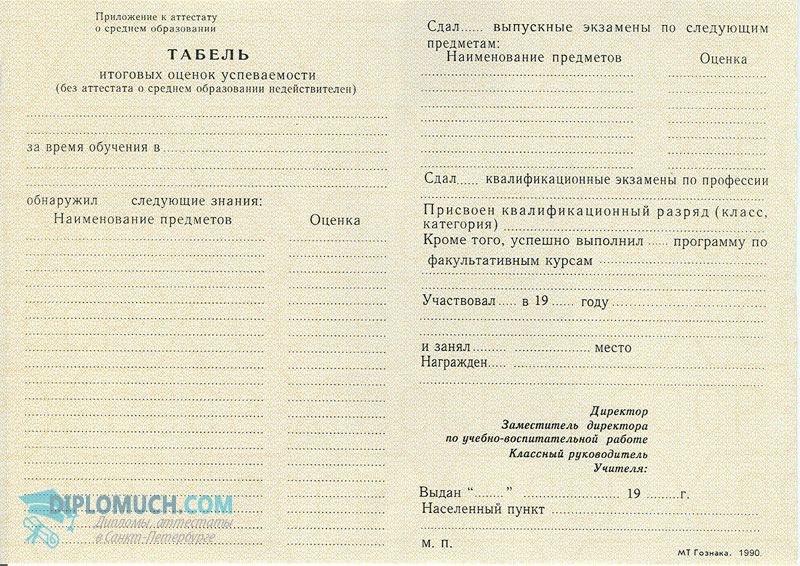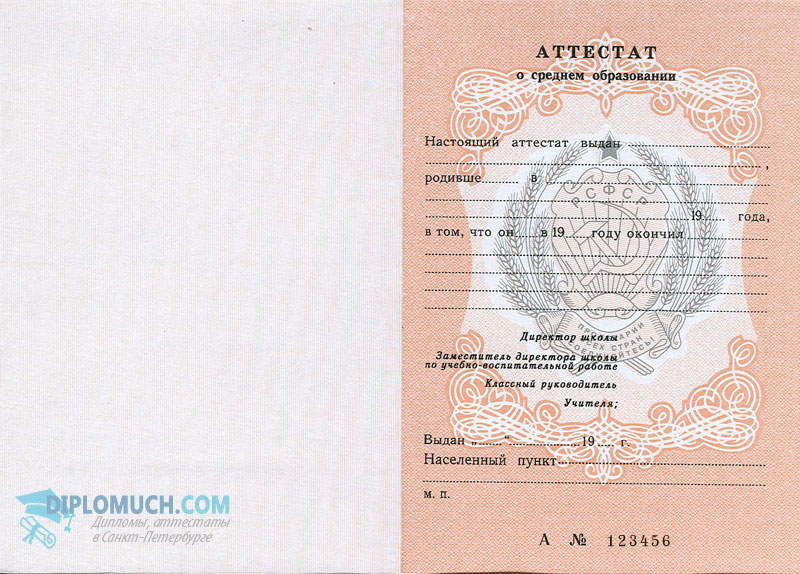 - Документ: Аттестат в виде книжки 2-х образцов — с приложением и без;